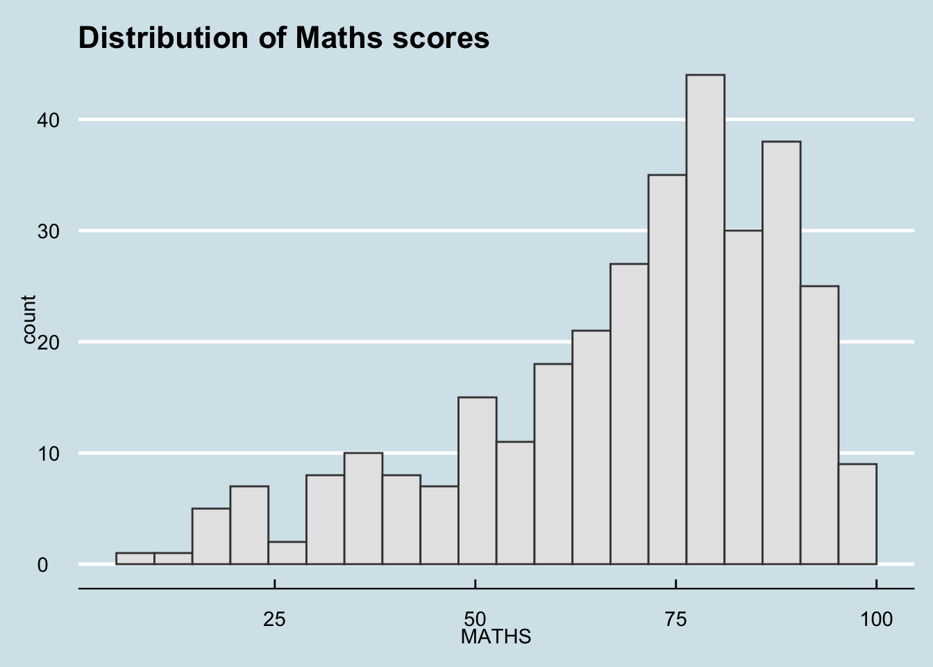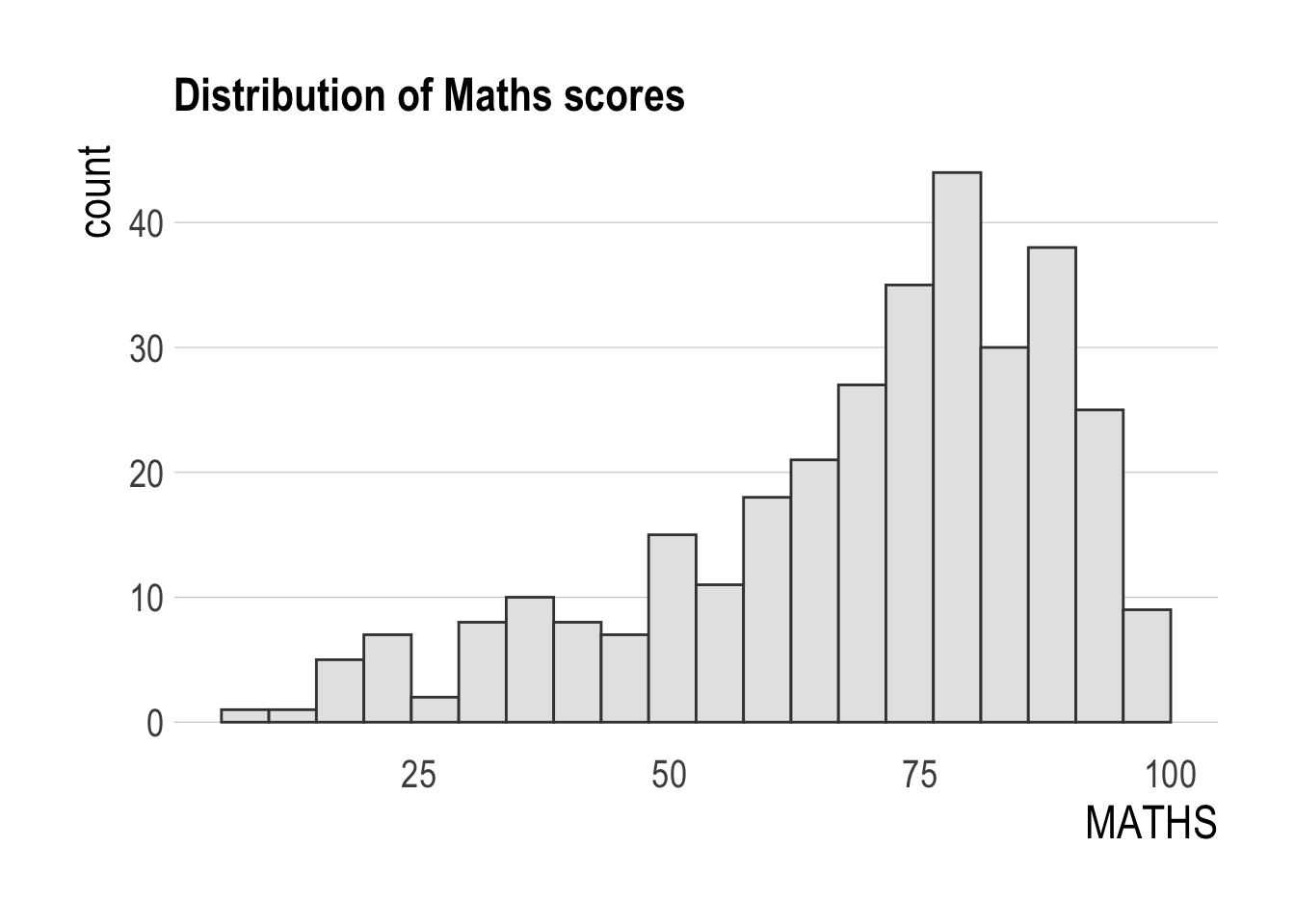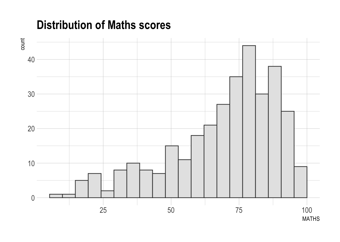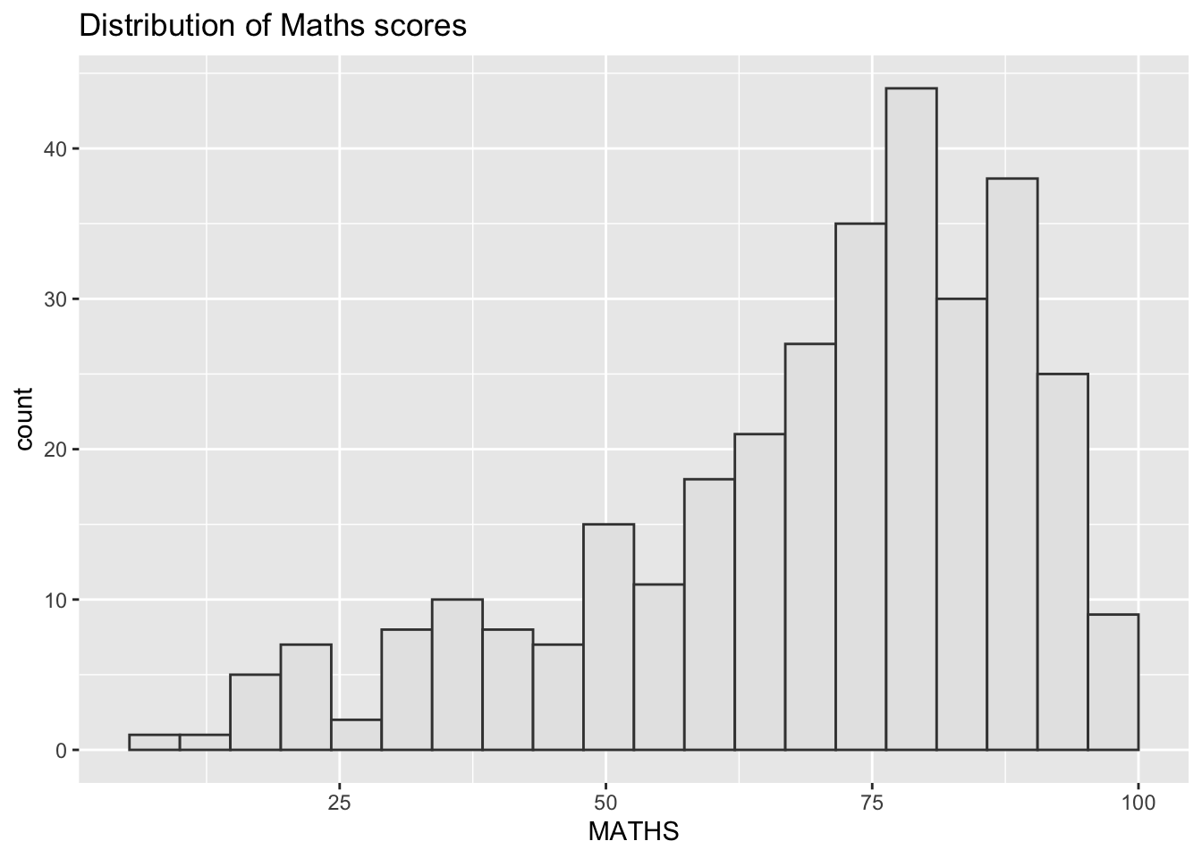 p1 <- ggplot(data = exam_data, aes(x = MATHS)) +