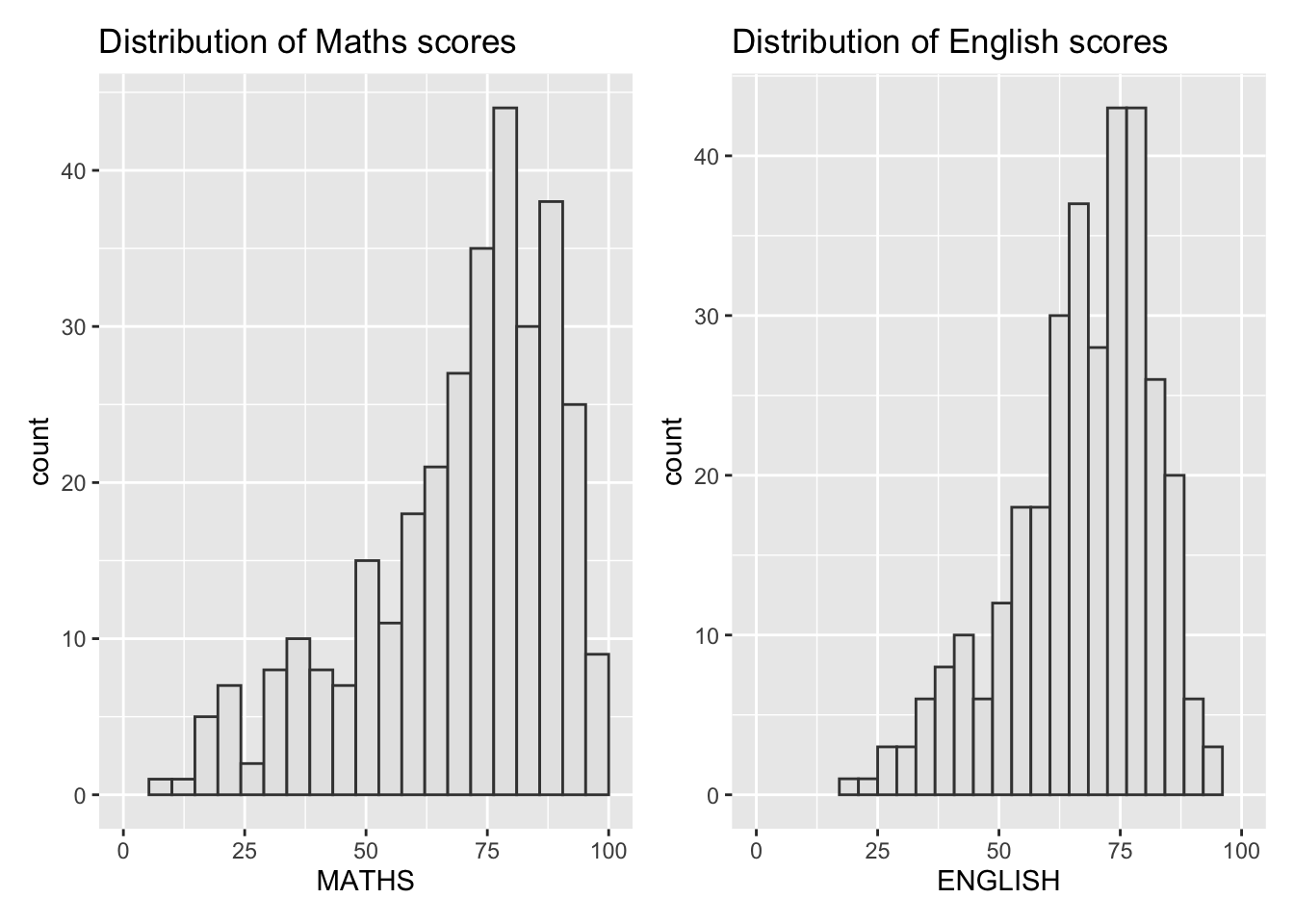 p2 <- ggplot(data = exam_data, aes(x = ENGLISH)) +